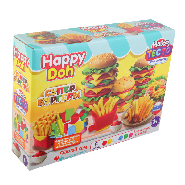 Тесто для лепки 6 цветов по 50гр Happy Doh Бургер и картошка 6 деталей PDSET-124781/398683