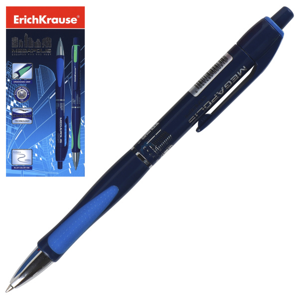 Ручка авт шар 0,7 син корп резин манжет Megapolis Erich Krause 31 син к/к